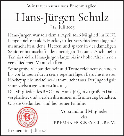 * 30.11.1929 in Bremen† 14.07.2025 in Bremen