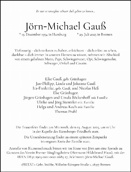 * 13.12.1954 in Hamburg† 29.07.2025 in Bremen