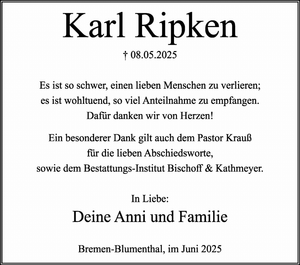 * 21.08.1935 in Bremen† 08.05.2025 in Bremen